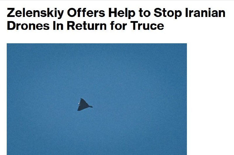 ⚡️Зеленский предложил странам Ближнего Востока помощь в борьбе с иранскими беспилотниками, если они убедят Путина согласиться на перемирие, — Bloomberg. «Я бы предложил следующее: у лидеров стран Бли