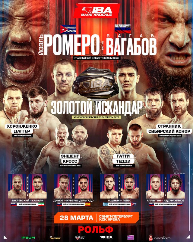 ⚡️Ромеро VS Вагабов — ГЛАВНЫЙ БОЙ IBA BARE KNUCKLE #4 🏟️ 28 марта | Санкт-Петербург | КСК Арена 🎫 Билеты в продаже: КУПИТЬ БИЛЕТ ◀️ ———————————————— ⚡️Romero vs Vagabov — IBA BARE KNUCKLE #4 MAIN