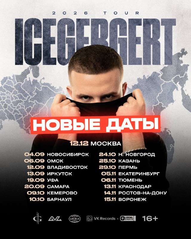 В связи с изменением логистики большого тура ICEGERGERT ранее заявленные концерты переносятся на осень. В туре появились новые города — Пермь и большой концерт в Москве. Новые даты указаны на афише.