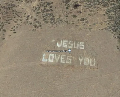 ✡️ Гигантскую надпись на поле “JESUS LOVES YOU” создал фермер в штате Айдахо (США). Надпись настолько велика, что её отчетливо видно даже со спутников в космосе. Она так же отображается в картах Goog