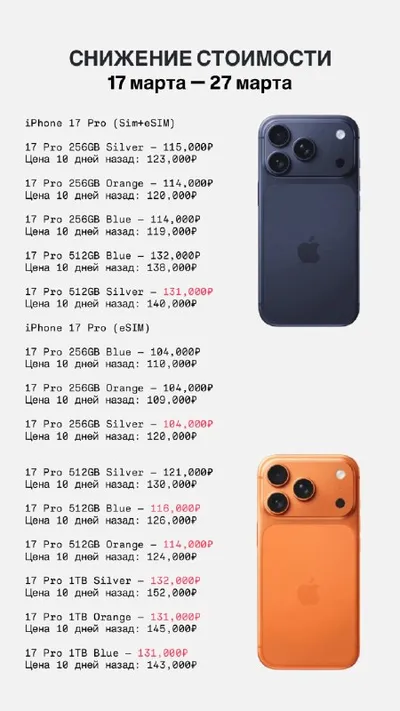 😁😆😁 доллар упал и айфоны снизились, анонсируйте на канале ниже прайсы, парни проверьте все сначала и красивое фото добавьте. я погнал, хороших выходных. iPhone 17 Pro Max (Sim+eSIM) 17 Pro Max
