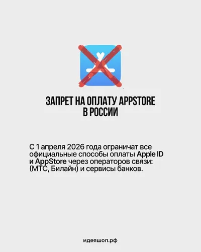 ‼️ ЗАПРЕТ НА ОПЛАТЫ APPLE ID В РОССИИ С 1 апреля пополнение баланса Apple ID с мобильного счета для владельцев iPhone станет недоступным. Операторы «большой четверки» получили соответствующее распор