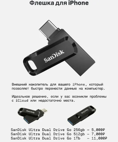 Перестаньте зависеть от iCloud Внешние носители для iPhone в наличии. Количество ограничено. Актуально для всех моделей начиная с iPhone 15 и новее! [СВЯЗАТЬСЯ ДЛЯ ЗАКАЗА]