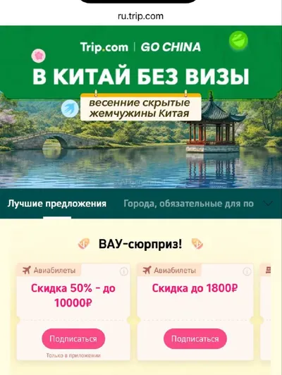Трипком сегодня распродает билеты и гостиницы в Китай 🇨🇳. Старт акции в 12:00 по Москве. Страница акции находится тут. На ней появится промокоды в 12:00, которые тут же следует применить при брони