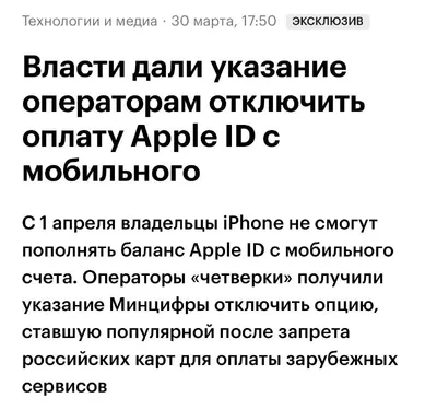 ❗️Четыре способа пополнить счёт Apple ID, чтобы сохранить свои фото и подписки, в т.ч. iCloud, Music, TV. ➖Мобильный телефон Сегодня, 31 марта, последний день, когда можно пополнить баланс российског