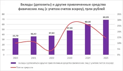 🇷🇺 У россиян на вкладах уже больше 70 трлн рублей. Это около 30% ВВП — но фондовый рынок этих денег не видит Деньги в экономике есть. И их очень много. Но вместо акций и облигаций они лежат в банка
