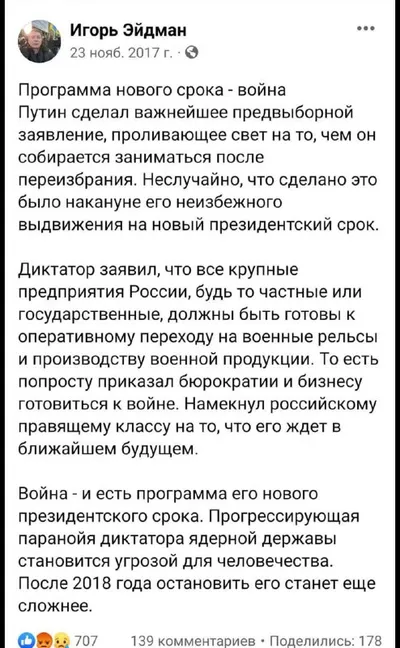 ФБ напомнил. Все было понятно уже давно. И сейчас программа Путина война, но уже глобальная.