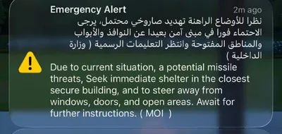 Пошли первые оповещения на телефон. Приходят с громким мерзким звуком сирены, который невозможно проигнорировать 😑 Особенность Дубая в том, что здесь нет бомбоубежищ, и где прятаться - не особо пон