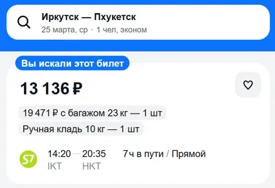 И пока вы думаете, стоит ли лететь в Москву за 25к, у S7 появился Пхукет за 12. Мы, конечно, ни на что не намекаем... но намекаем. https://aviasales.tpm.lv/ohSnMiMQ #HKT @ikt_irk | IKT MAX