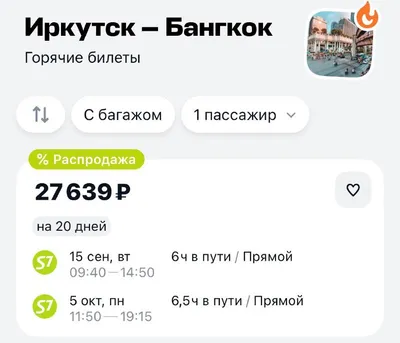 Бангкок от зелёных не с распродажи и на ближайшие даты: https://aviasales.tpm.lv/mMKFBDHd #BKK @ikt_irk
