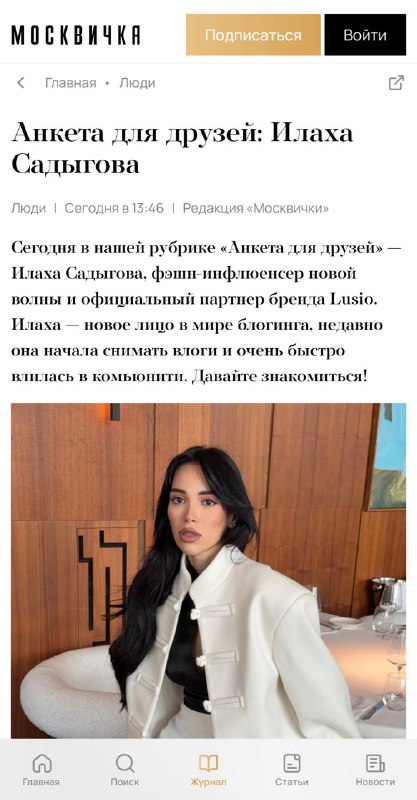 Журнал «Москвичка» опубликовали нашу небольшую статью в рубрике «Анкета для друзей»🤍 Рада быть частью крутого проекта!