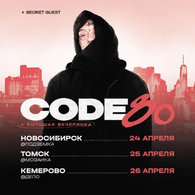 CODE10/80 отправляется в мини-тур по Сибири! CODE10/80 — это уникальный свежий звук, который сочетает в себе элементы электронной, поп и андерграунд музыки. Приобрел популярность после релиза EP - «