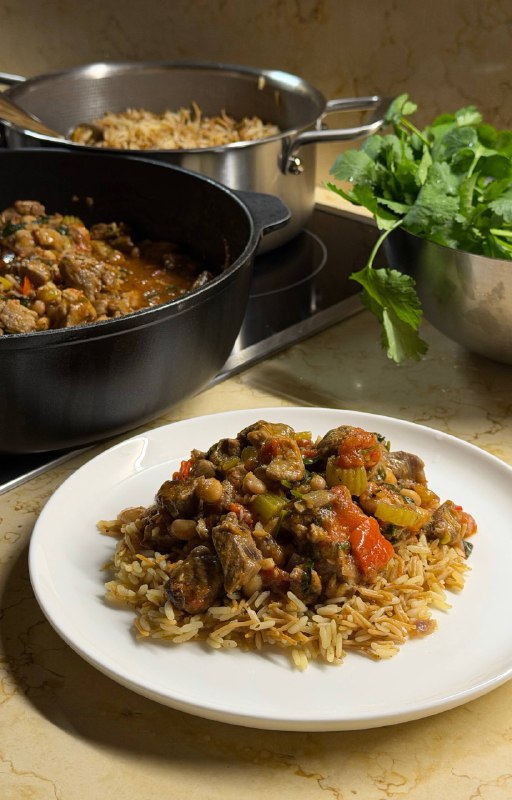 💭 идея для ужина: Баранина с овощами баранья лопатка или задняя нога без кости помидоры без кожи лук красный чеснок сельдерей перец сладкий перец острый фасоль кинза кориандр молотый чёрный