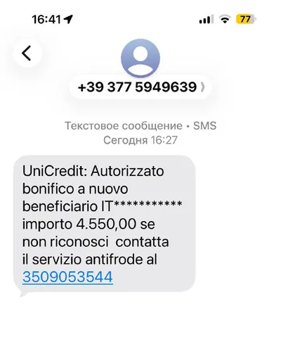 Тупость итальянских мошенников То они пришлют смс от банка, даже не подставив название, вместо номера, что я перечислил Амазону какие - то деньги. То теперь мне вот неплохая сумма на голову свалилась