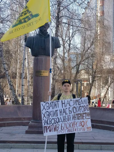 Пикетчика с плакатом против интернет-цензуры задержали в Воронеже Несмотря на запрет митингов против блокировок интернета, россияне сегодня пытались заявить о своей позиции. Воронежский активист Ники