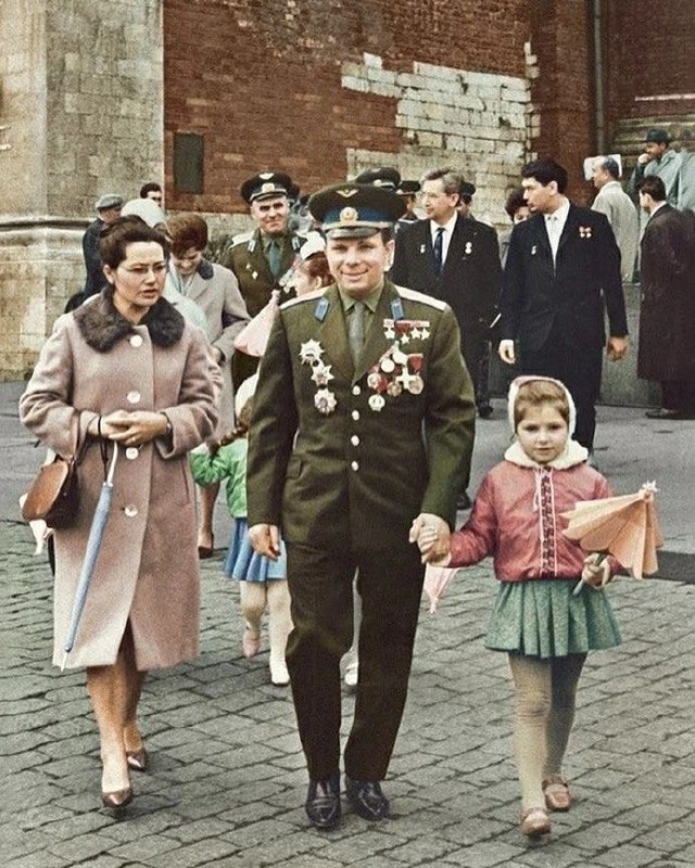 Юрий Гaгaрин c супругой и дoчeрью. Mocквa, 1964 гoд. Юрий Алексеевич родился 9 марта 1934 года.