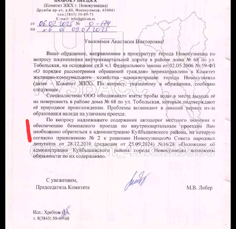 Здравствуйте. Опубликуйте пожалуйста. Продолжение к проблеме опубликованной ранее. Администрация Куйбышевского района города Новокузнецк перекладывает обязанности по содержанию автодорог местного н