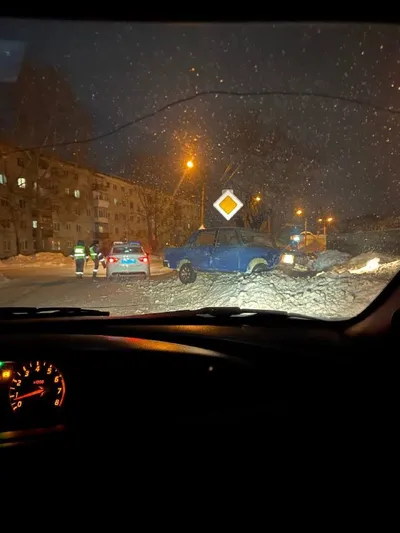 🚓🚗 У водителя ВАЗ 2105 вечер пошел не по плану. На ЖД переезде с Чкалова на Силикатный водитель отечественного автопрома не справился с задним приводом и на высокой скорости улетел в сугроб. К счас