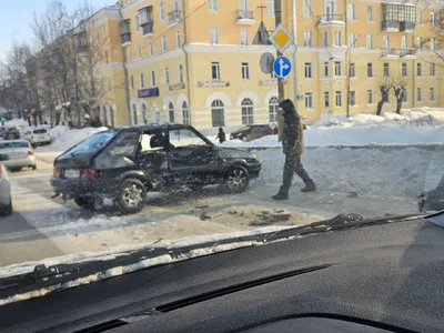 Очередное серьезное ДТП из-за плохой уборки снега. На этот раз уничтожена "четырка" на "горбатом" мосту.
