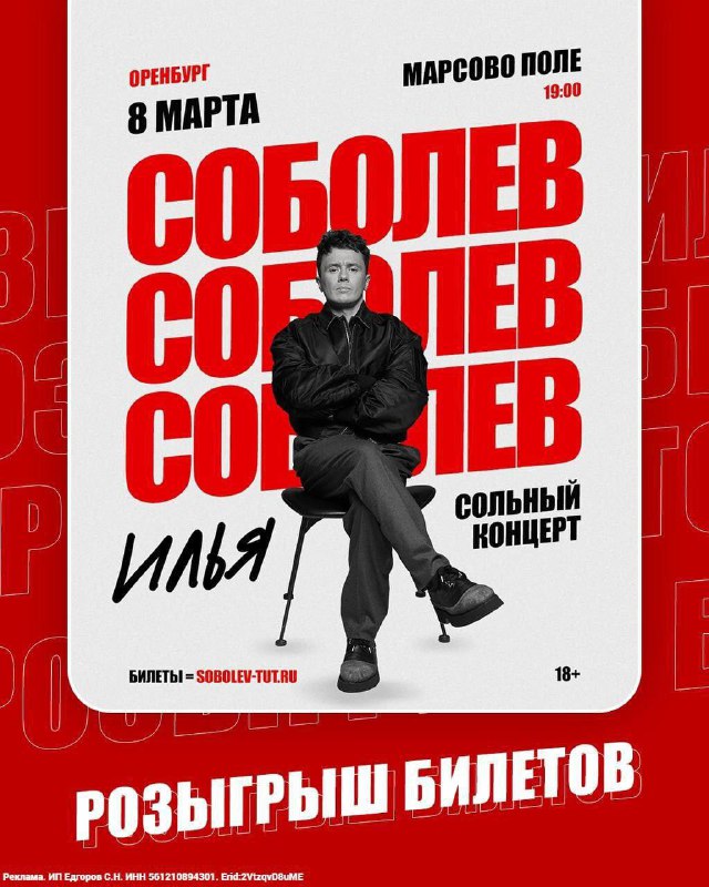 🎙️🥳 Розыгрыш 6 билетов на Соболева для наших подписчиков! Оренбург! Сольный стендап-концерт Ильи Соболева — одного из самых популярных комиков, актера и ведущего множества топовых проектов состоитс