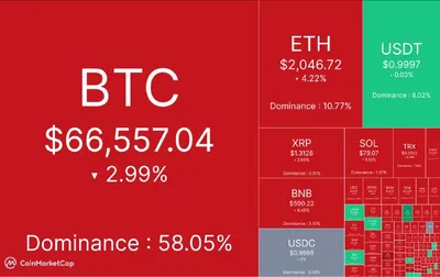 🩸Трамп снова уронил рынки После нового выступления Дональда Трампа рынки ушли в просадку — усилилась риторика по Ирану и возможной эскалации конфликта. На этом фоне BTC откатился к ~$66 000, паралл