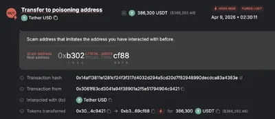 $386 000 потеряны из-за одной ошибки Пользователь отправил 386 300 USDТ на поддельный адрес, скопировав его из истории транзакций. Мошенники заранее «отравили» историю — подкинули почти идентичный ад