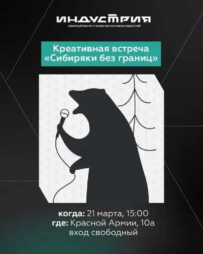Приглашаем на мероприятие наших коллег и соседей: 21 марта в фудмаркете «Артель» пройдет креативная встреча «Сибиряки без границ». Эксперты брендинга, дизайна и киноиндустрии расскажут, как формирует