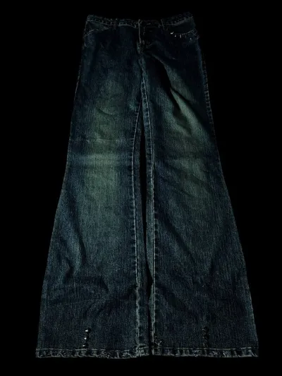 GREY.DESTROYED_FLARED.JEANS [metall, pierced, distressed, pyramids, spikes] 1 of 1 7700₽ more photos in comm @INFINE_SERVICE