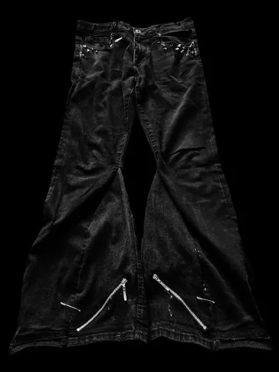 GREY.ZIP_FLARED.JEANS [metall, pierced, distressed, pyramids, spikes, zip] 1 of 1 8400₽ SOLD SOLD SOLD @INFINE_SERVICE