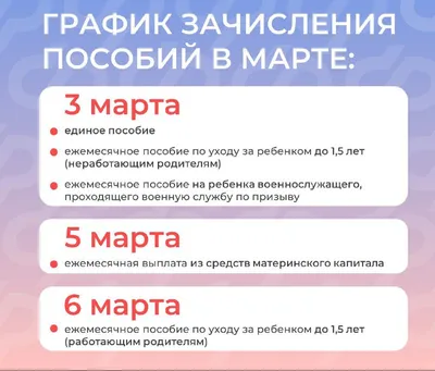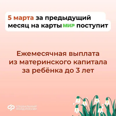 Сегодня 5 марта родители получают ежемесячные выплаты из материнского капитала Напоминаем, что перечисления осуществляются в новом месяце за предыдущий. Это значит, что в марте вы получаете пособия