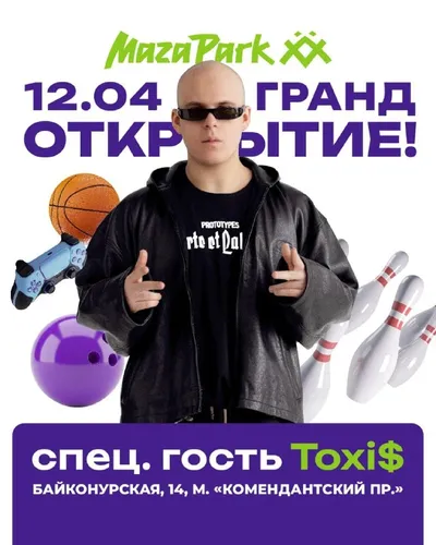 Рэпер Toxi$ на открытии нового MazaPark ⏰ 12 апреля 10:00-21:00 В новом пространстве собрали картинг, верёвочный парк, боулинг, бильярд, роллердром, VR-зоны, PlayStation, компьютерный клуб и игровые