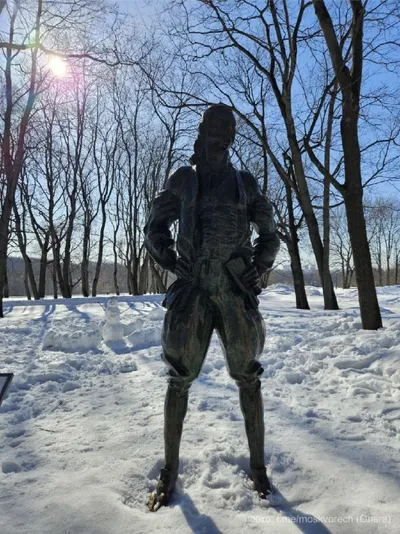 Коломенское — это не только яблоневые сады и белокаменная церковь. Это место, где история прячется в деталях 😳. Вот две из них: 🆔Петр I у своего дома Скульптура первого императора России застыла ря
