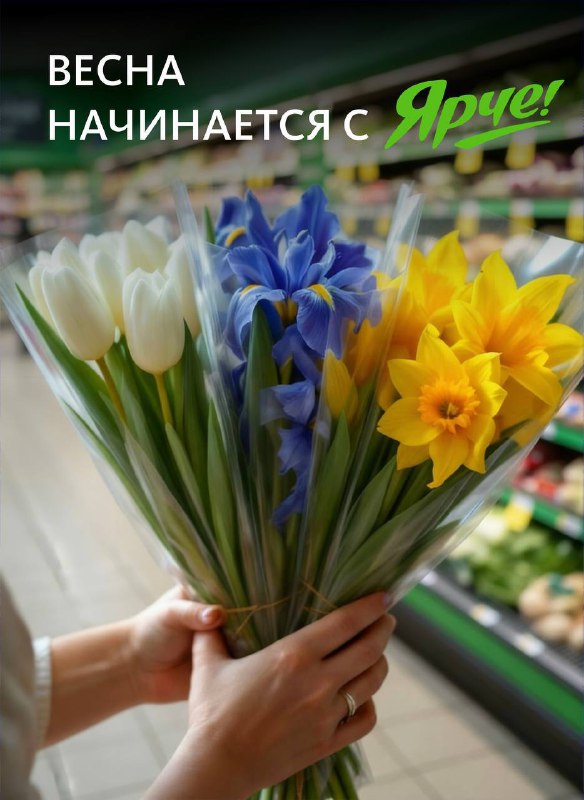 Весна начинается с «Ярче!» 🌷 Сегодня в супермаркеты федеральной сети «Ярче!» поступают первые цветы к 8 марта. В весенней коллекции первоцветов: 🌸Тюльпаны – незабываемая классика. 🌸Ирисы – эле
