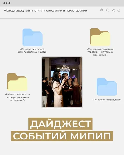 ПсихологияОсновной канал МИПИП ✔️ Лайфхаки, советы, кейсы, бесплатные вебинары, новости Института и живые истории из практики. 👉🏻 Профессиональная переподготовка в институте @professia_psyholog 👉🏻 Повышение квалификации @mipippro 👉🏻 Наш сайт mipip.ru