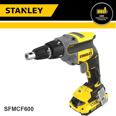 Неожиданно STANLEY продолжили развивать свою линейку аккумуляторного инструмента FATMAX 20V, представив новую модель - профессиональный шуруповерт по гипсокартону SFMCF600 с насадкой для серийного зак