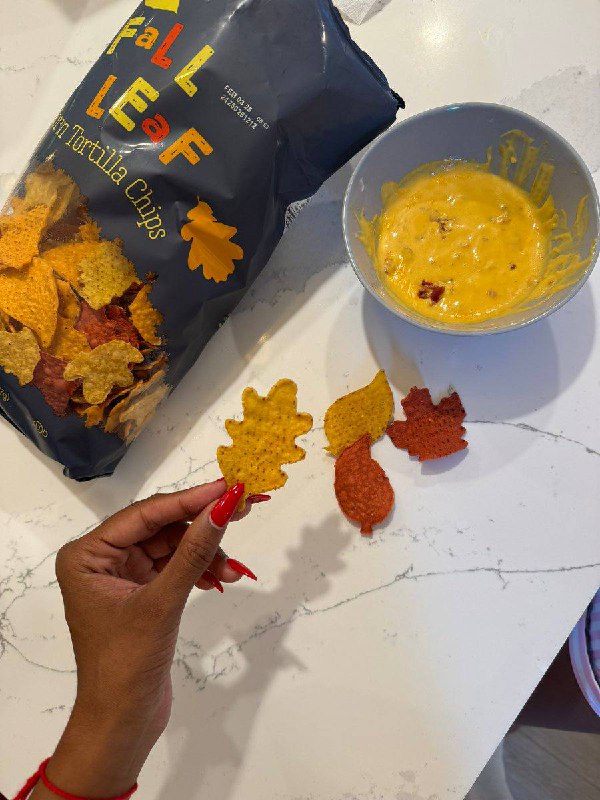 Осенний дизайн чипсов в виде желтых и красных листьев