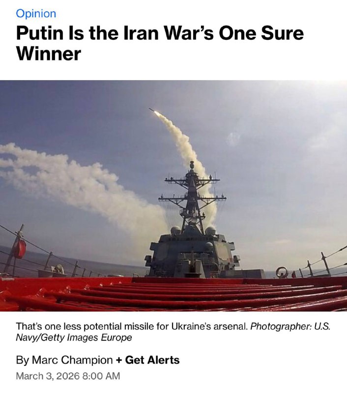 🇷🇺Единственным победителем в конфликте США и Израиля с Ираном становится Владимир Путин, пишет Bloomberg По мнению обозревателя Марка Чемпиона, удары ВМС США по Ирану сокращают шансы на новые пост