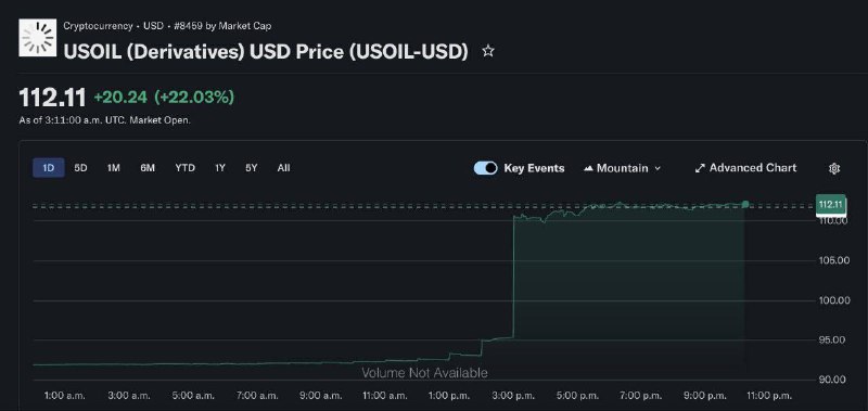 🛢️Нефть на некоторых фьючерсных рынках (биржа Hyperliquid) достигла 112 долларов. Что же случилось: Экспорт из Ирана (1,3 млн баррелей в день) — приостановлен. Горящие хранилища в Тегеране, затопил
