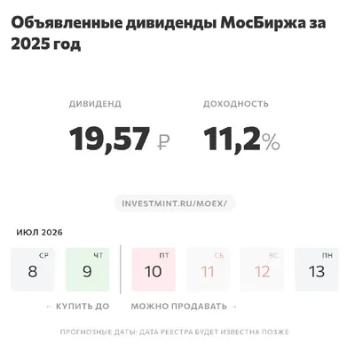 #MOEX @investmint • @divalerts • @ruforecasts • @mintering Инвестминт — дивиденды и купоны в одном месте