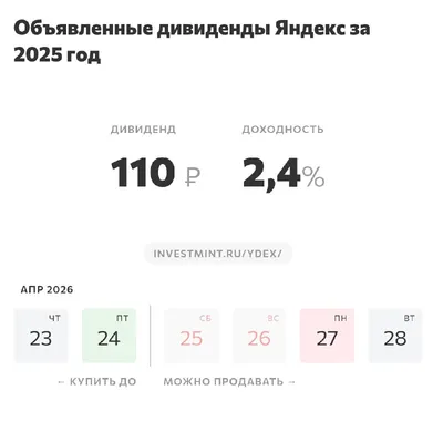 #YDEX @investmint • @divalerts • @ruforecasts • @mintering Инвестминт — дивиденды и купоны в одном месте