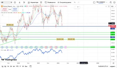 #HD, оценка справедливой стоимости на предстоящий период. Крупная, сильная компания, ретейлер, исторически ростовая. Нахожу перспективы умеренными, прошла оценка была в сторону понижения цены в район