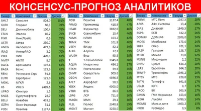 Высылаю сводную таблицу с текущими консенсус-прогнозами инвест-домов по наиболее недооцененным акциям. #ПРОГНОЗ #РЕЙТИНГ #ТОП #АНАЛИТИКИ