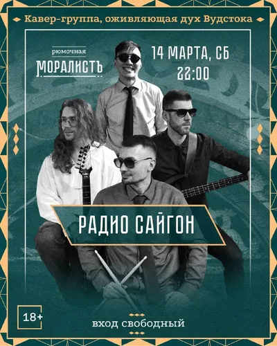 Вечер, когда Вудсток внезапно случится на Баррикад Кавер-банда «Радио Сайгон» поднимает на поверхность чистый рок 60–70-х: Jefferson Airplane, Rolling Stones, Bob Dylan, The Animals и ещё пачку музык