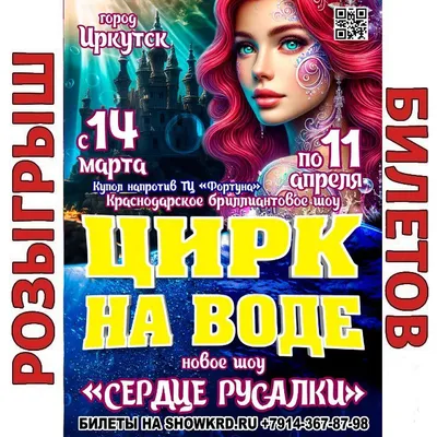 🎉 Разыгрываем 6 билетов в Цирк на воде, который представит в Иркутске новое шоу «Сердце Русалки»! Главная премьера 2026 года в цирке на воде! ✔️Вступи в тг-каналы @irkkp и @onlirk ✔️Напиши любой ко
