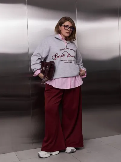 Весеннее обновление уже на ВБ 🔥 Создали стильный костюм — верх с принтом и свободные брюки. Их особенность — кулиска снизу, которая может превратить палаццо в актуальные аладдины. База для множес