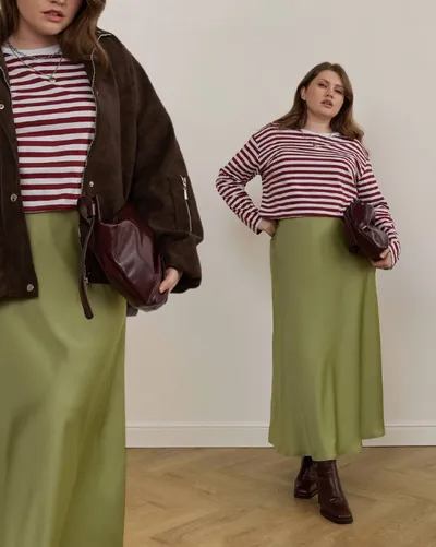 «Верните юбку» — увидели. Сделали! ⭐️ Вы писали «верните юбку» — и мы правда не могли не вернуть её 🧡Отшили ещё немного атласных миди в оливковом цвете — та самая: надела — и уже можно выходить, д