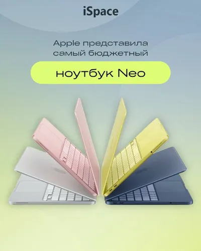 Apple представила новый Мас Neo -самый доступный ноутбук компании. Он получил алюминиевый корпус в цветах blush, indigo, silver и citrus и 13-дюймовый дисплей Liquid Retina c поддержкой 1 млрд цветов.
