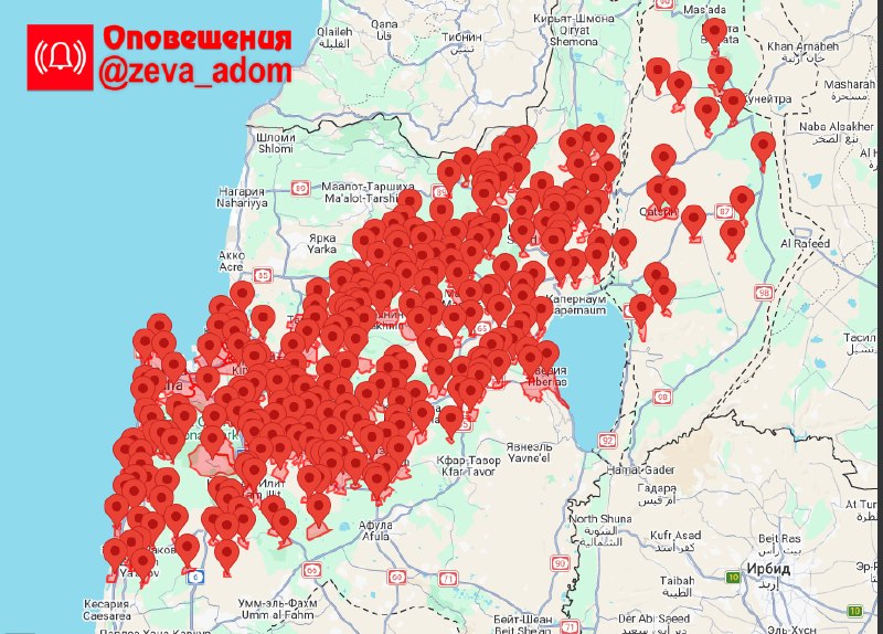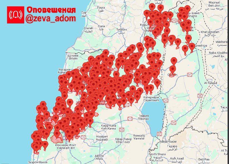 Ракетный обстрел (01:44) • Верхняя Галилея • Центральная Галилея • Линия противостояния • Нижняя Галилея • Неизвестный регион • Южный Голан • Ха-Мифрац • Ха-Амаким • Ха-Кармель • Северный Голан 🚨 О