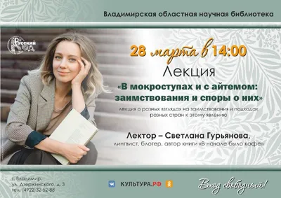 А есть у меня подписчики из Владимира? Приходите в эту субботу спорить о заимствованиях)