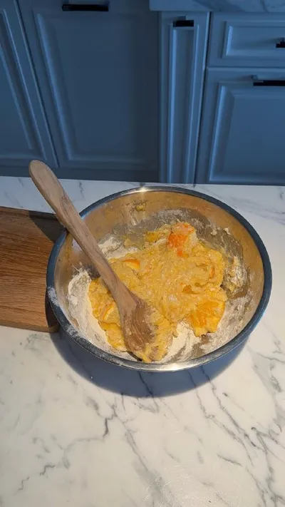 Апельсиновый кекс 🍊🥧 Продолжаю экспериментировать с кексами. Попробовала завирусившийся тиктоковский рецепт, который взбивается блендером. До лимонного не дотягивает, текстура не та, но все равно